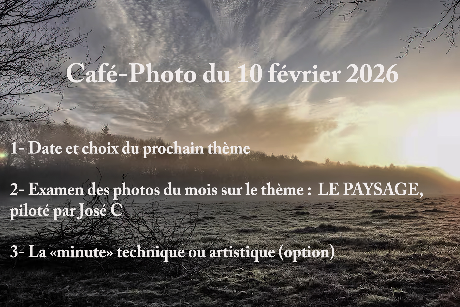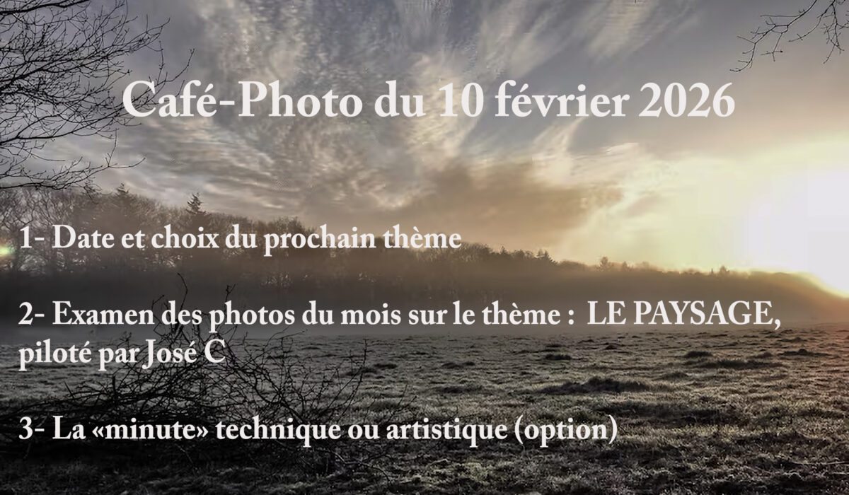 L’OBJECTIF DU CAFÉ-PHOTO est de s’enrichir mutuellement sur l’art photographique en échangeant sur :