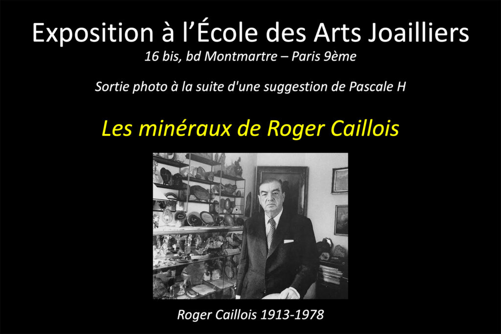 Sorties envisagées Canal St-MartinCircuit CaroleChâteau de la ChassePuces de St-Ouen Sorties validées en cours de préparation Architecture : Gare de Villejuif-Gustave Roussy (Philippe H) – Courant janvier 2026 Galeries photo de nos sorties 2025-12-07- Exposition des minéraux de Roger Caillois (École des Arts Joailliers) Ou l'écrivain qui rêvait de pierres 2025-11-22- Perspectives et lignes de fuites - Passerelle François Coty Par une belle matinée bien fraîche ! 2025-08-11 - Ciel nocturne à La Roche-Guyon Dommage que la pleine lune nous ait empêchés de pouvoir faire davantage de photos 2025-06-10 à 14-Berlin Une superbe escapade ! Avec, en outre, un temps magnifique 2025-05-31-Domaine de Villarceaux Une sortie très appréciée 2025-05-07-Entrainement des chevaux à Chantilly Par une matinée bien fraîche ! 2025-04-05-Déambulation à Montmartre Soleil et ciel bleu au rendez-vous pour cette matinée de printemps. 2024-09-Escapade 5 - Lille Nous avons découvert une ville magnifique et dynamique sous un ciel bleu digne de la Côte d’Azur ! 2025-08-25-Fête de Ganesh La fête de Ganesh, c’est tous les ans vers la fin août. Des odeurs et des couleurs. Idéal pour la photo 2024-05-Escapade 4- Berry-Bourbonnais Deux régions absolument à découvrir, riches en Histoire et en paysages superbes 2024-03-Street Art (Paris 13ème) Un endroit de créativité qui vaut le détour, plein d’images colorées . Un régal pour la photographie ! 2024-01-Axe Majeur à Cergy (photo de nuit) La photo de nuit par un froid de canard ! Mais ça valait vraiment le coup !
